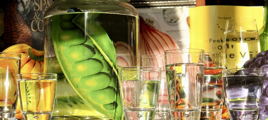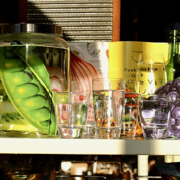 この現象を活かし、透明感溢れるグラスに水を注いで、