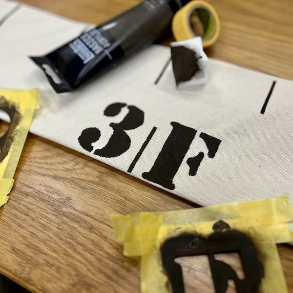 最終的に約15cm幅のテープとするため、縫い代を含めて35cm幅のキャンバスを5m分カットし、縫い合わせて一本の帯状に仕上げる。