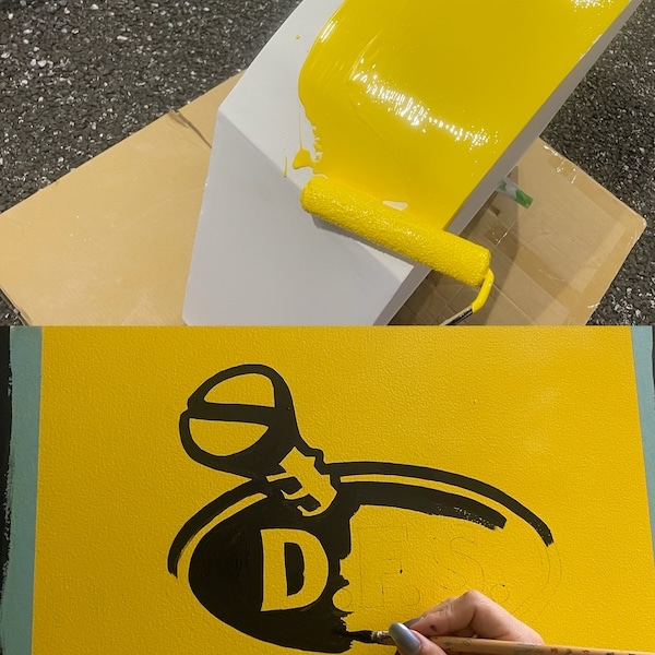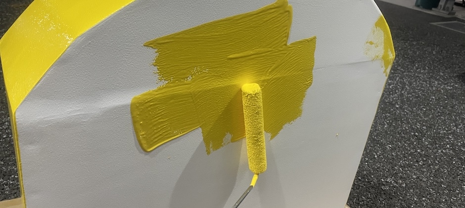 外枠とアーチ部分は黄色で仕上げるため、まず下地として白色を塗装。
