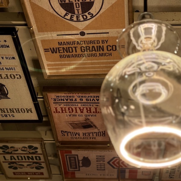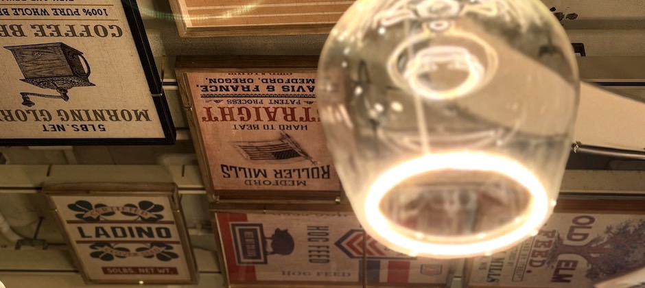 前回の記事にも登場したワイングラス形の電球と組み合わせてみたが、温もりのある明かりが代官山店の雰囲気にぴったりで、気に入っている。